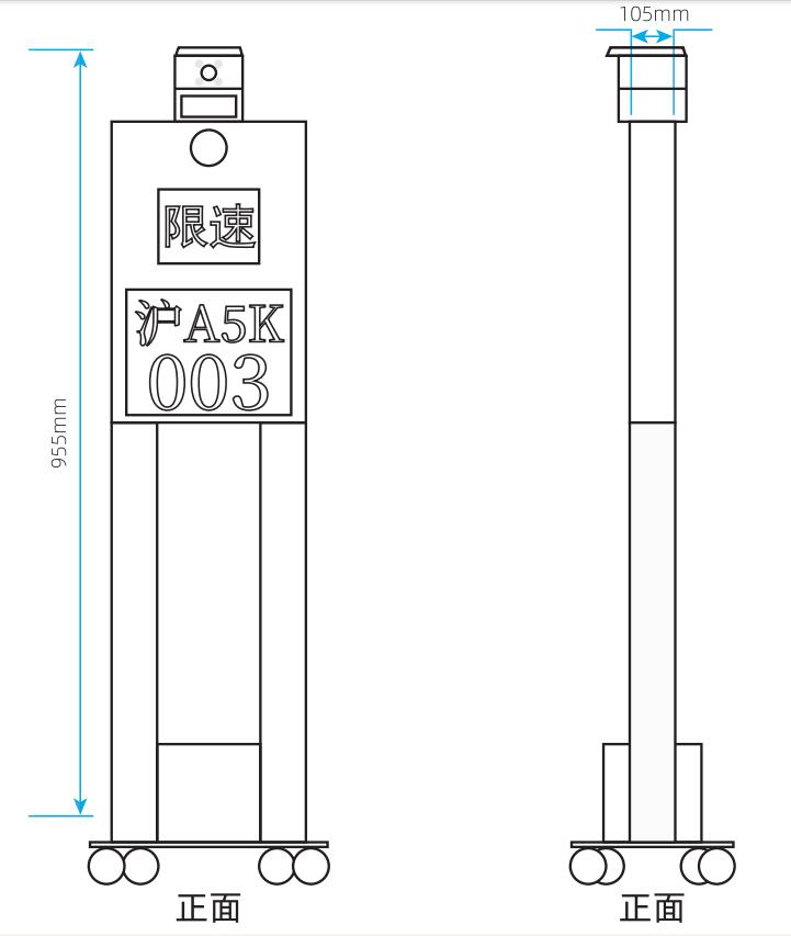 上方LED屏輪流顯示“限速”和“限速值”,此值可任意設(shè)置(測(cè)速范圍內(nèi))